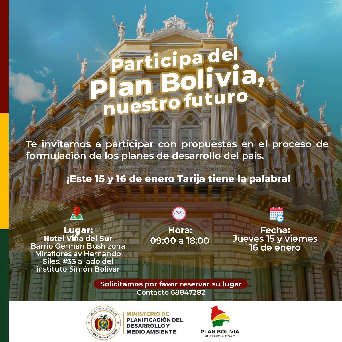 La convocatoria es amplia y representativa, reuniendo a los principales actores del desarrollo territorial, incluidos los sectores productivos, instituciones públicas y privadas, organizaciones sociales, la academia, la Asamblea Legislativa Plurinacional y la sociedad civil. Cada participación aporta una perspectiva valiosa, y el intercambio de ideas fortalece la identificación de prioridades y la construcción de consensos a nivel departamental.